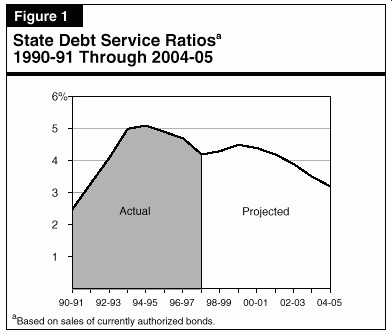 shows that as currently authorized bonds are sold, the state's debt ratio will