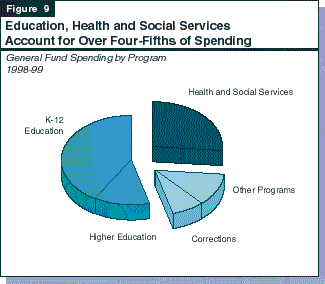 Although education funding has increased some from the January spending proposal, the administration's basic spending priorities remain relatively unchanged. In terms of major program areas, the May Revision plan includes above-average increases in education and corrections, and relatively smaller growth in health and social services. Figure 9 shows that, under the proposal, K-12 and higher education account for well-over one half of the budget, health and social services slightly more than one-fourth, and youth and adult corrections for about 8 percent. Other programs account for the remaining roughly 12 percent of the General Fund budget. In the following sections, we highlight the Governor's proposals in key program areas.