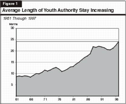 Youth Authority Length of Stay Is Steadily Increasing. The average length of stay for offenders in the Youth Authority has been steadily rising over time since the data began to be collected in 1961, as shown in Figure 1.