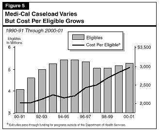 Figure�5 illustrates how Medi-Cal caseload and per-eligible costs have changed since 1990-91, along with projections of caseload and costs per eligible for 1999-00 and 2000-01 based on the budget estimates.