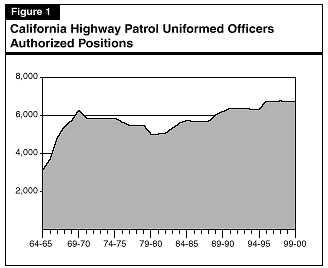 The number of California Highway Patrol (CHP) officers has slowly increased since the early 1980s, following a continuous decline in the 1970s. The increase in staff responds to increased workload and an expansion of CHP's mission. The department estimates that its current level of service is significantly below what it considers to be prudent and justified. The Legislature may want to reexamine the appropriate level of service to be provided by CHP. This would require information from the department on the additional costs of achieving given service levels.